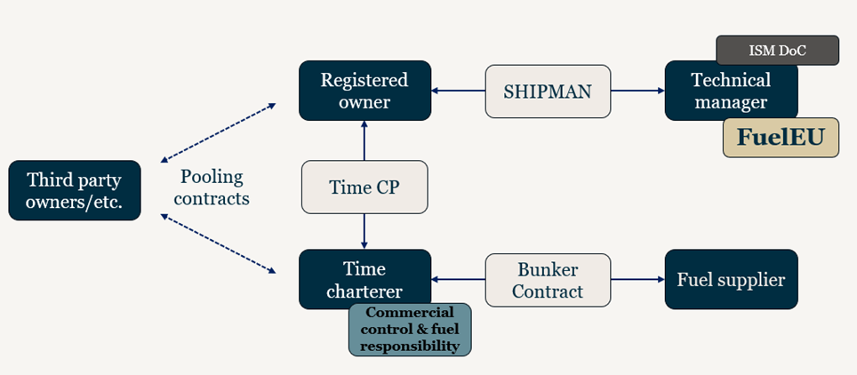 The parties negotiating contracts and clauses relating to FuelEU compliance have different commercial interests and regulatory hurdles to consider. A common issue is that the regulatory entity – the ‘company’ – is the DoC holder (often an external technical manager) whereas the commercial entity being responsible for the fuel procurement and commercial management is often a different entity, either the registered owner or a time charterer. Another typical issue pertains to the transfer of responsibilities from for instance a seller to a buyer which involves the need to share data and the pricing of the (often unknown) pooling cost. To no surprise, the contract clauses are still evolving in the marketplace and with many variations.